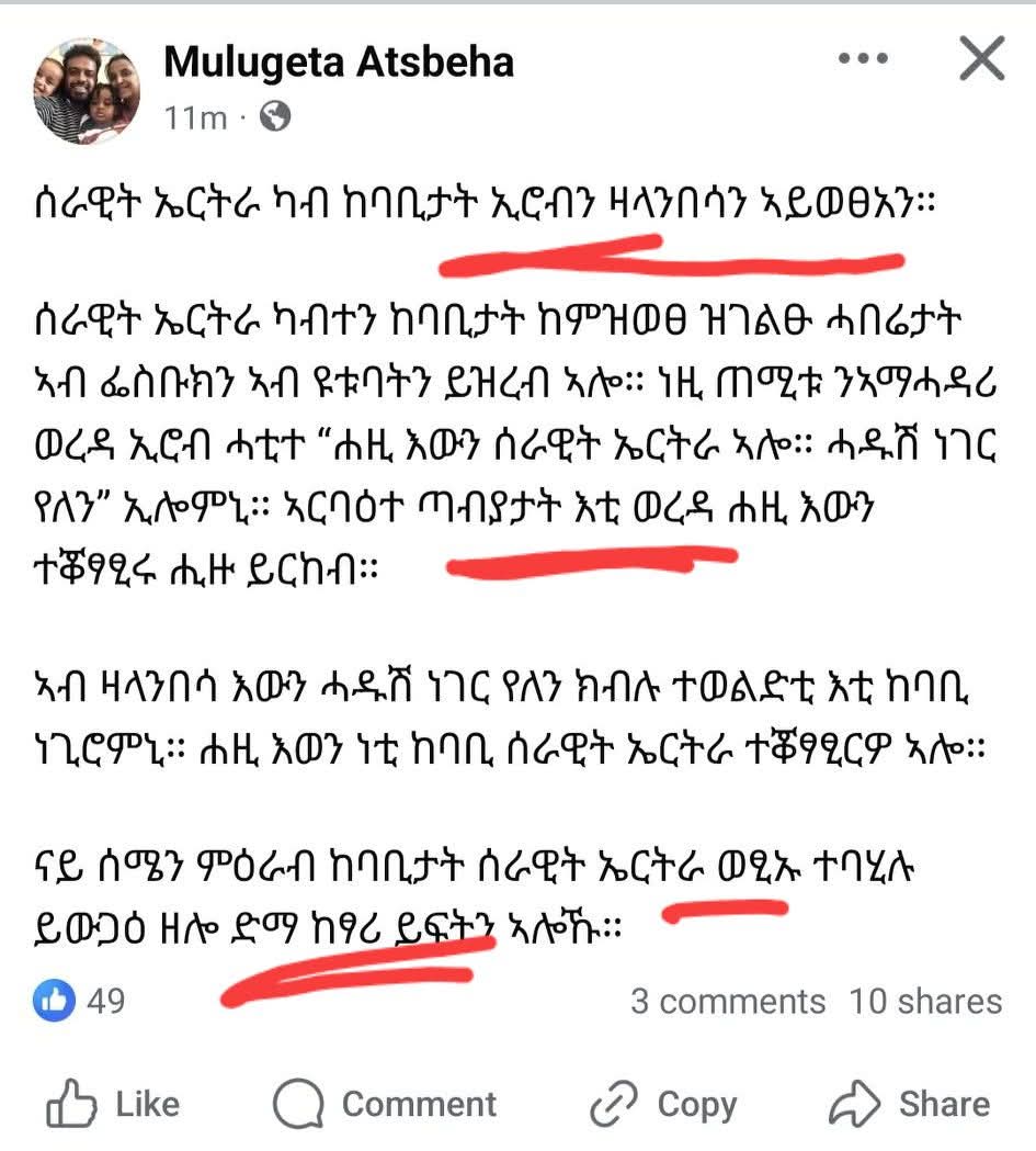 “Eritrean forces have not withdrawn from Irob or Zalambessa.Claims on Facebook and YouTube suggesting a pullback are baseless.