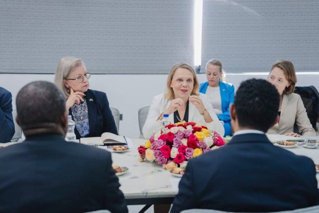Commissioner Sandokan Debebe met with Sofie From Emmesberger, Ambassador of the European Union to Ethiopia, alongside representatives from Finland and France, including Sinikka Antila and Pirjo Liisa Hekkila, Head of Mission and Deputy Head of Mission at the Embassy of Finland, and Julien Voituriez, Deputy Head of Mission at the Embassy of France.