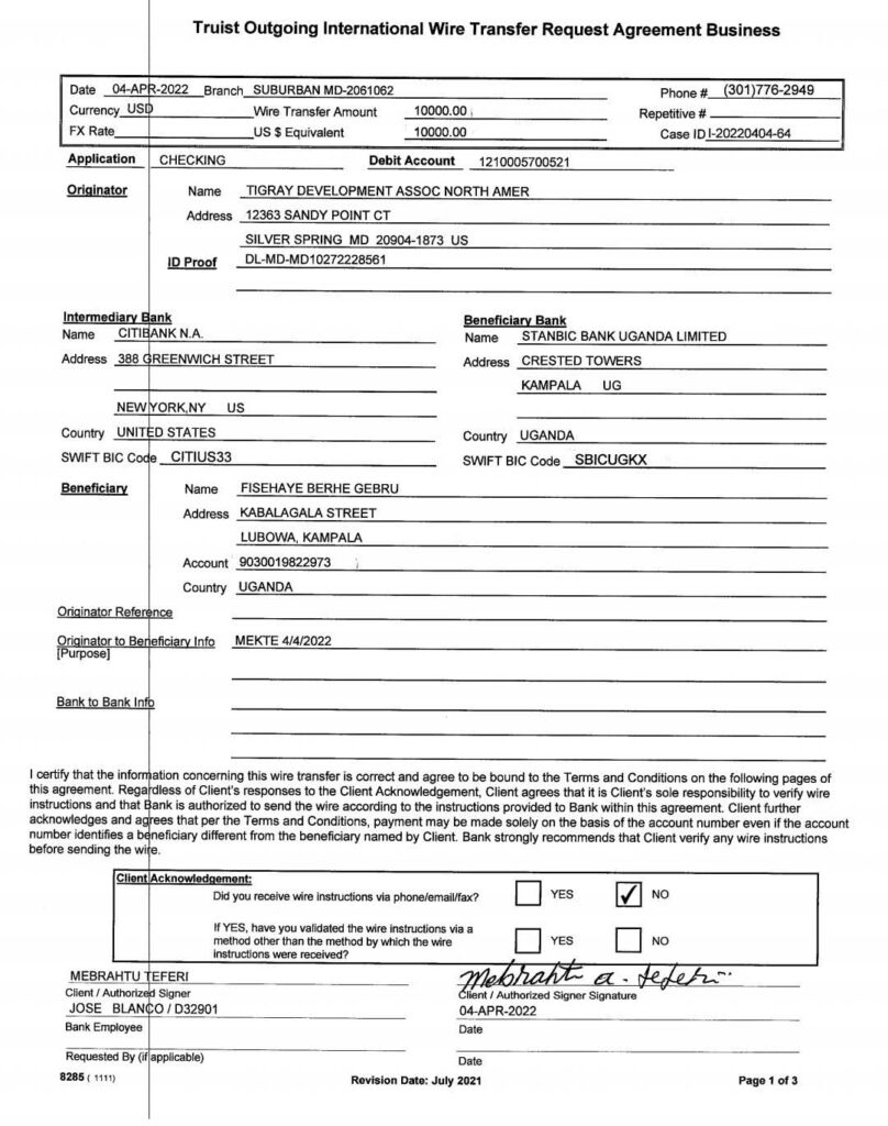 The corrupt rent-seeking officials show no regret or remorse for embezzling funds from the TDA-NA bank account, transferring 2 million USD via wire transfer to a Swiss bank on December 7, 2021. We should not dismiss genuine concerns and comments. Instead, it is wiser and more beneficial for everyone to expose the TDA-NA board members’ and TPLF’s corruption and greed. Although accepting the truth can be difficult, learning from our mistakes will benefit us all.