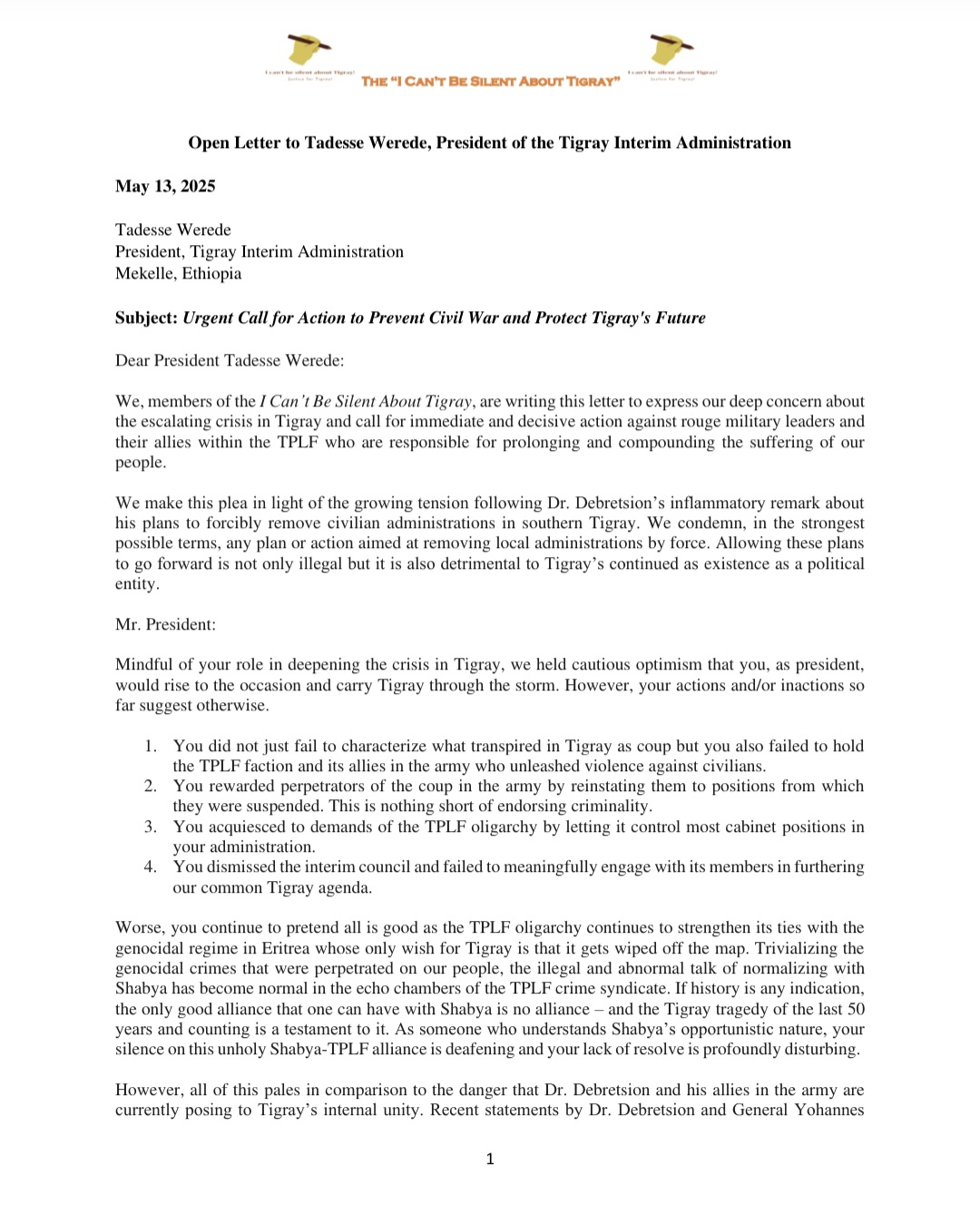 This growing momentum comes after months of internal crisis in Tigray. The once-dominant TPLF leadership has been widely discredited for its role in triggering and mishandling the war that devastated the region. In recent weeks, a wave of resignations, arrests, and political realignments has swept through the Tigray Interim Administration, as grassroots movements and survivors’ groups demand accountability.